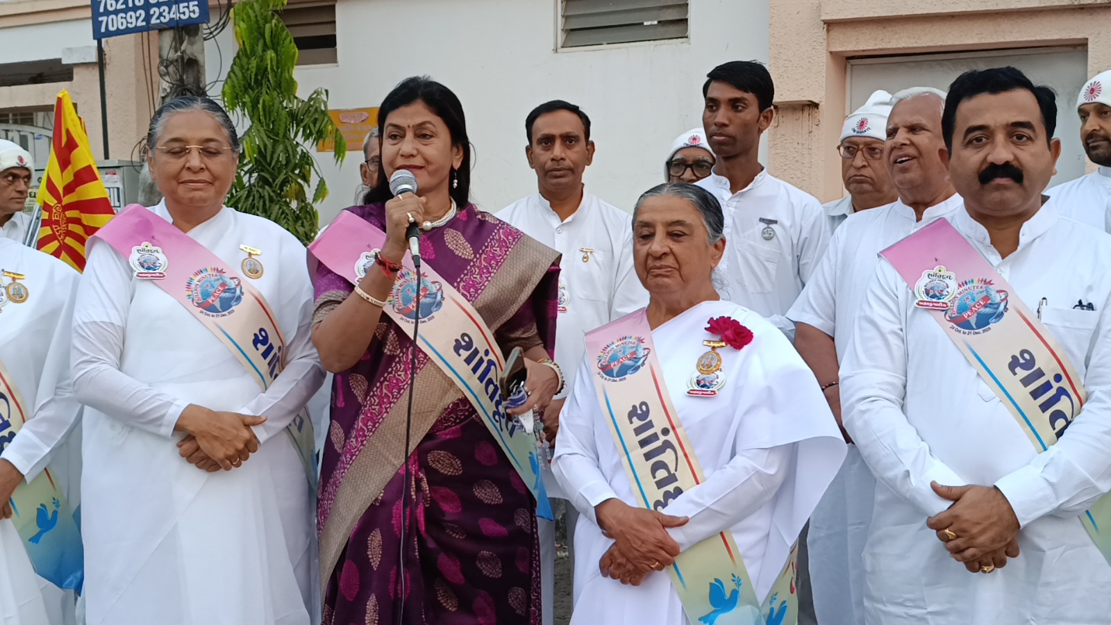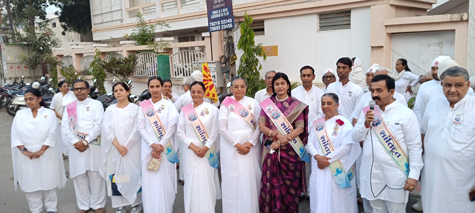 अति सुखद संयोग के रूप में संस्था मुख्यालय माउंट आबू से 65 वर्षों से राजयोग के गहन अभ्यास की अनुभवी राजयोग प्रशिक्षिका राजयोगिनी शीलू दीदी जी भी कार्यक्रम में उपस्थित रहे। कॉर्पोरेटर श्रीमती संगीताबेन चोकसी और वडोदरा BJP कोषाध्यक्ष श्री गोपाल भाई रबारी भी विशिष्ट अतिथि के रूप से शामिल हुए।शांति पदयात्रा की शुरुआत सेवाकेंद्र से शीलू दीदी जी एवं गणमान्य अतिथियो के द्वारा हरी झंडी दिखाकर, तिरंगा एवं शिव ध्वज लहराते हुए की गई। यह पदयात्रा आगे क्षेत्र के अक्षर चौक पर पहुंची जहां 15 मिनट तक सभी ने शांति के शक्तिशाली वाइब्रेशन प्रवाहित किए।वहां सभी को संबोधित करते हुए शीलू दीदीजी ने कहा कि “आज के स्ट्रेस भरे दौर में, इंसान को सबसे पहले अपने अंदर शांति महसूस करनी चाहिए। क्योंकि अपनी अंदर की शांति से ही वर्ल्ड पीस बनाना मुमकिन है। हर दिन पांच से दस मिनट मेडिटेशन द्वारा शांति का वातावरण बनाने का शुभ कर्म और सेवा हमें जरूर करना चाहिए|”